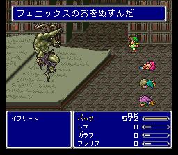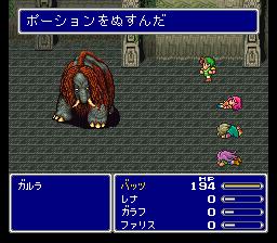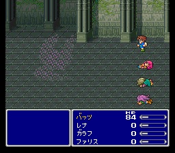それなれば、とバッツは後ろに下がって戦闘開始。どうせ攻撃はエアロと吸血とゴブリンパンチだけやし。